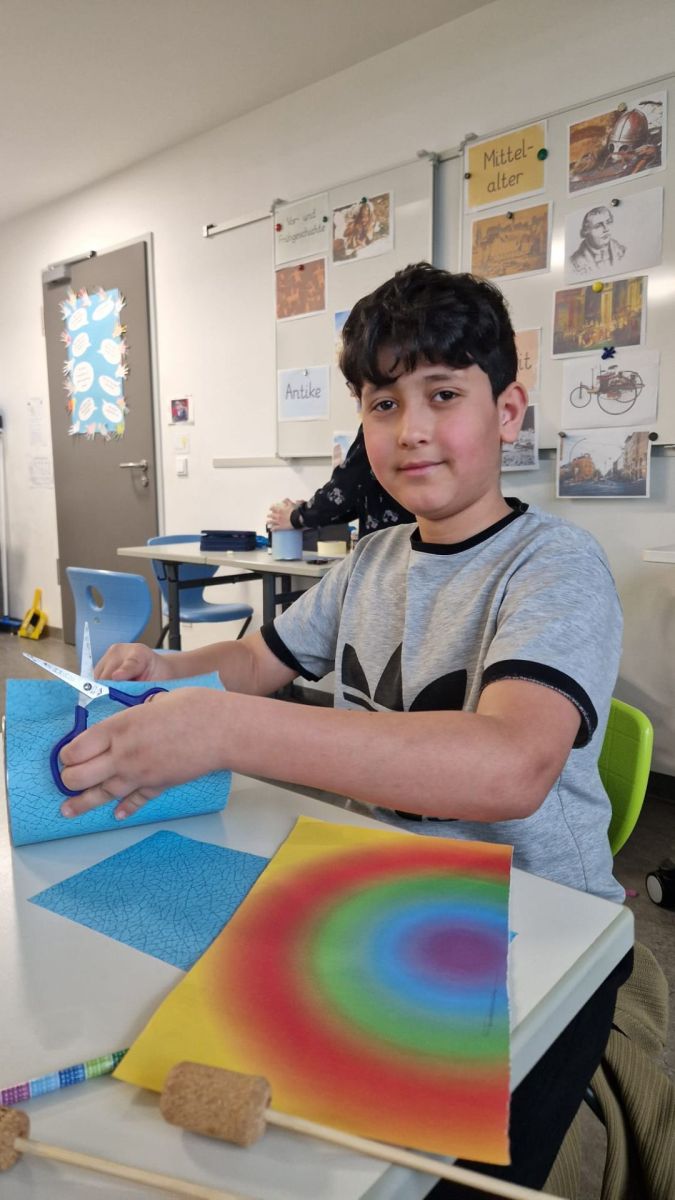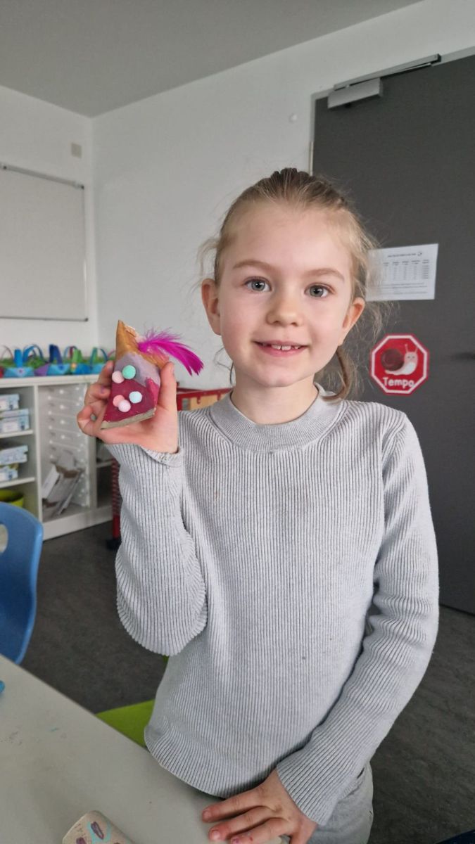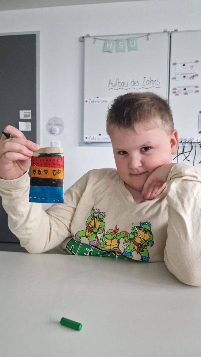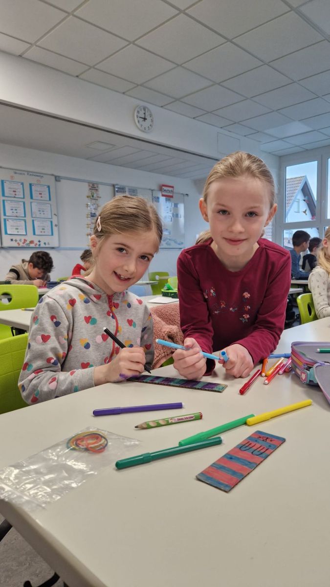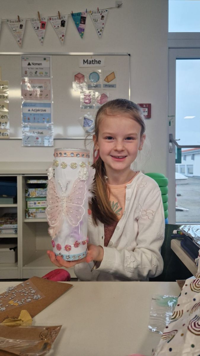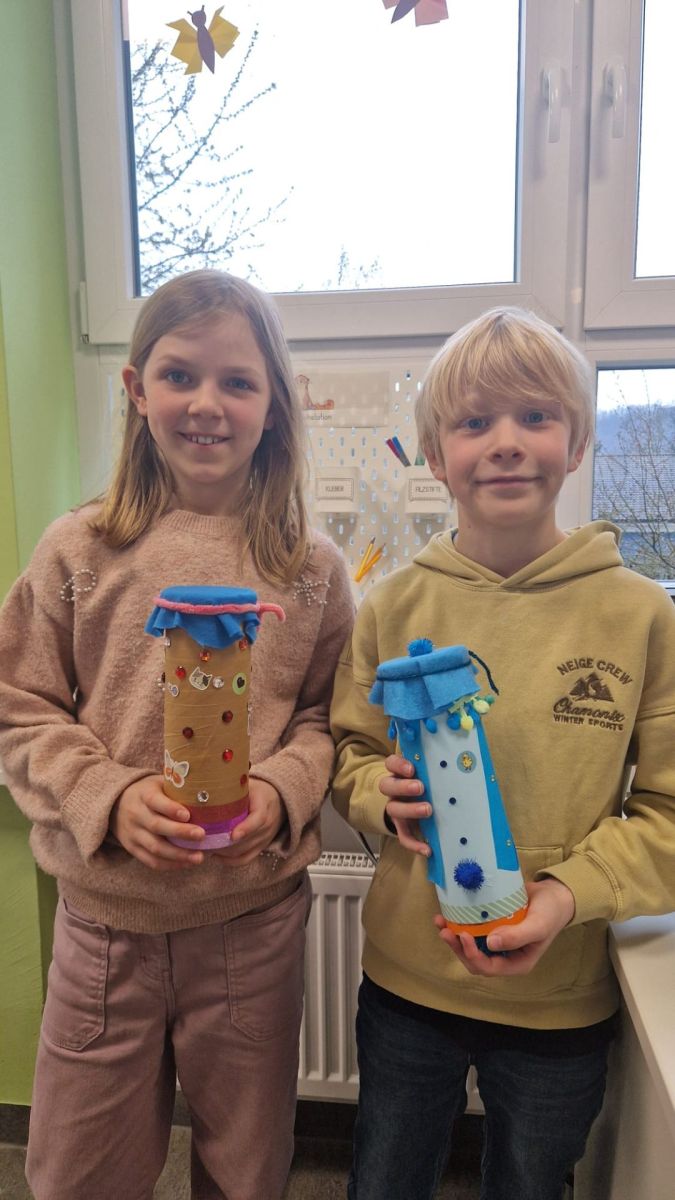 Die ersten Klassen gestalteten bunte Rasseln aus Toilettenpapierrollen, welche sie mit Stiften bemalten, mit Reis füllten und anschließend sorgfältig verschlossen.